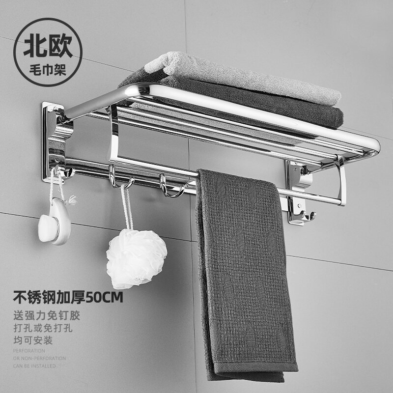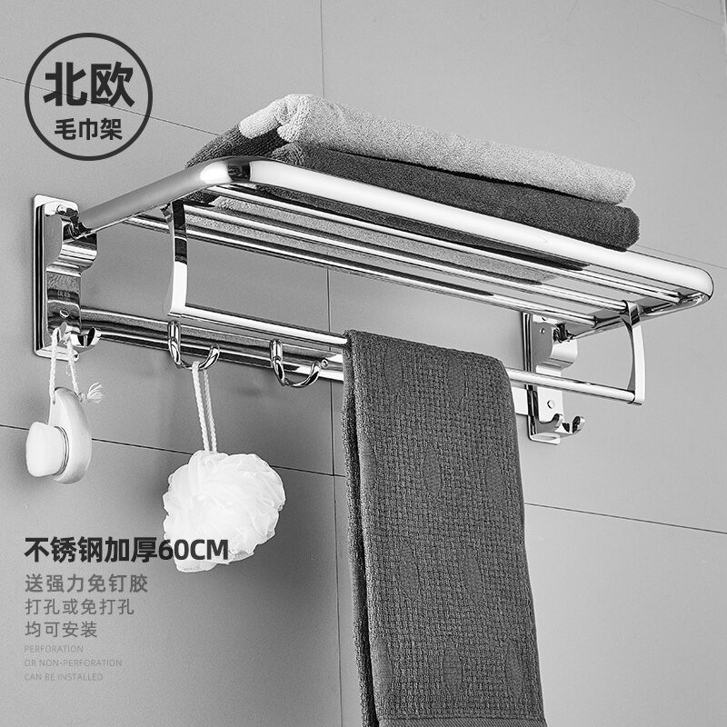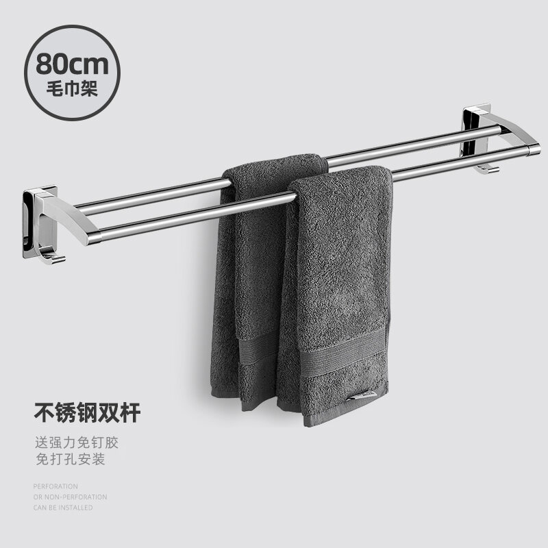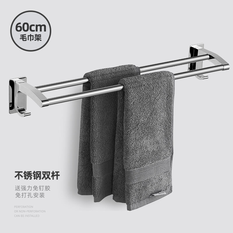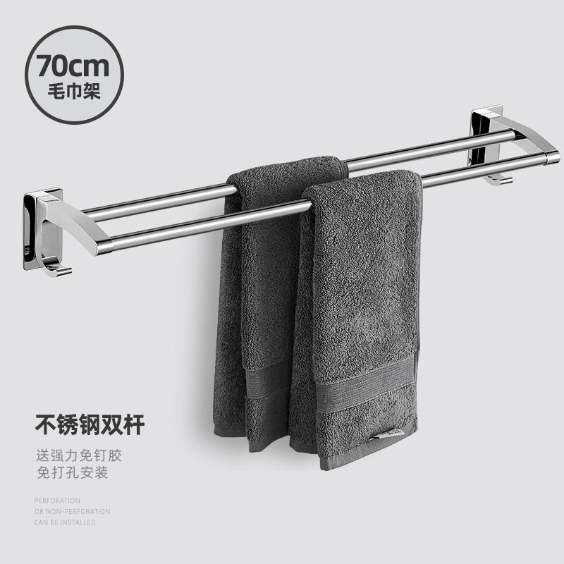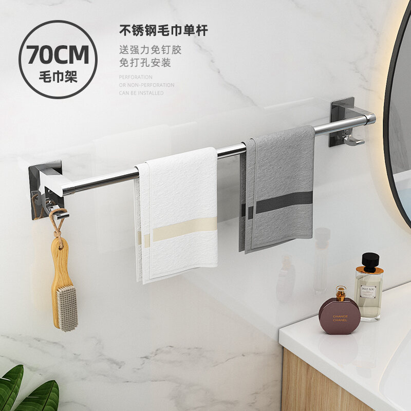 Towel Rack Punch-free Bathroom Stainless Steel Towel Rack Bathroom Hanging Rack Toilet Rack Towel Bar Single Rod