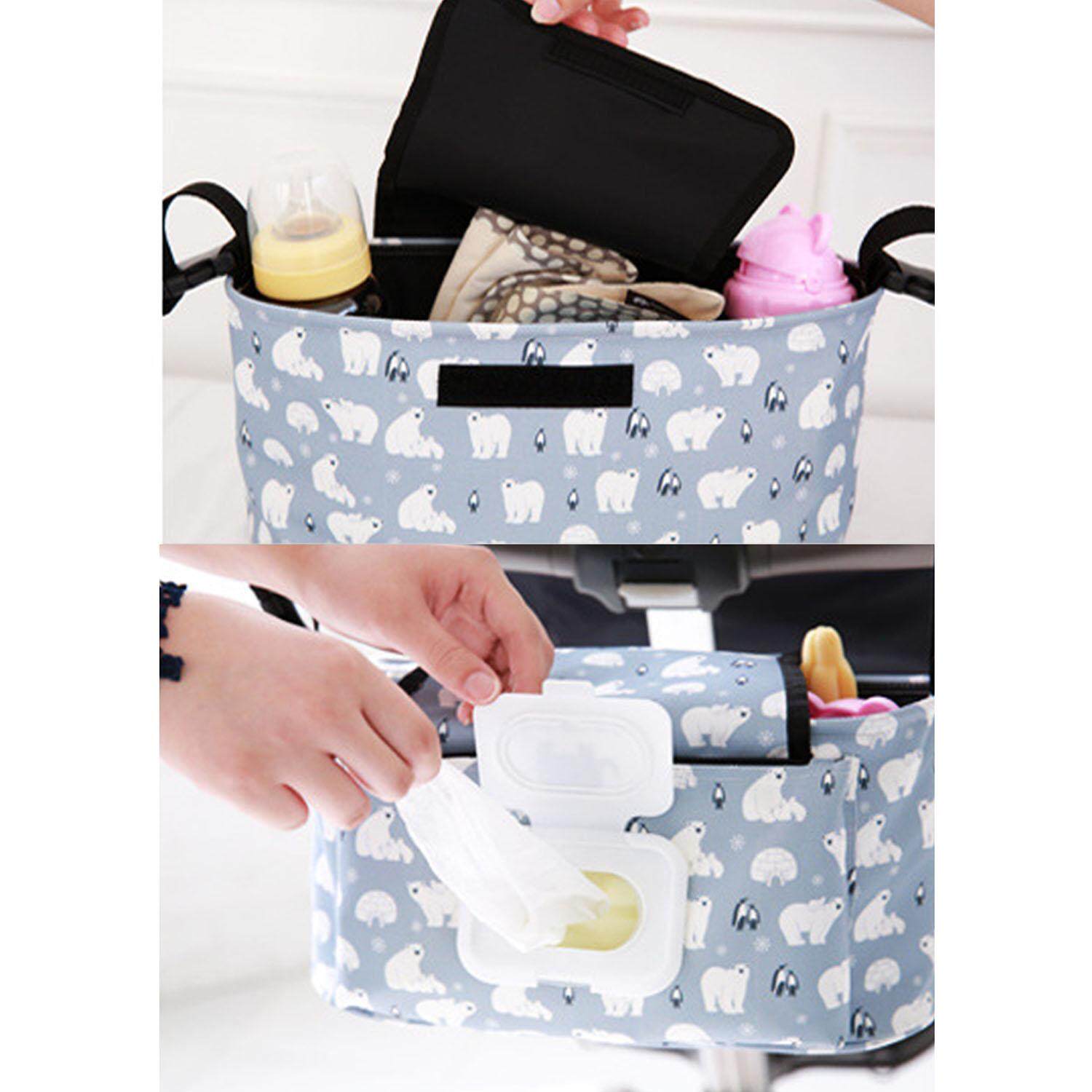 Fashion Portable Oxford Cloth Multi Functional Baby Stroller Hanging Storage Organizer Bag Pouch for Outdoors Traveling Containing Diapers Milk Bottle Towel Toys Light Blue