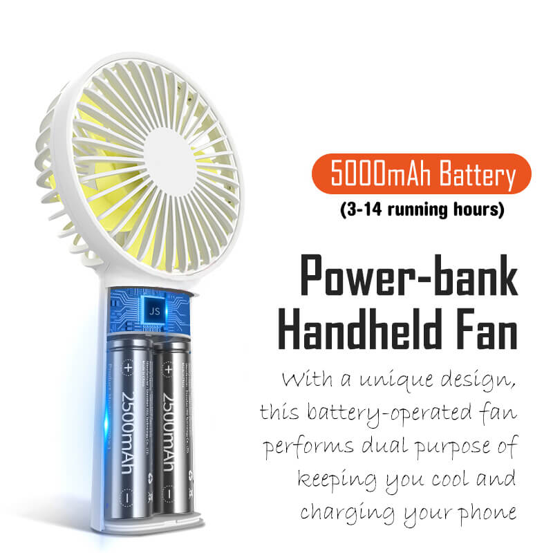 WAMP Portable Handheld Fan 5000mAh Personal Mini USB Rechargeable Desk Table Fans with Powerbank Charge Pal Feature for Outdoor Travel Transit Office Home