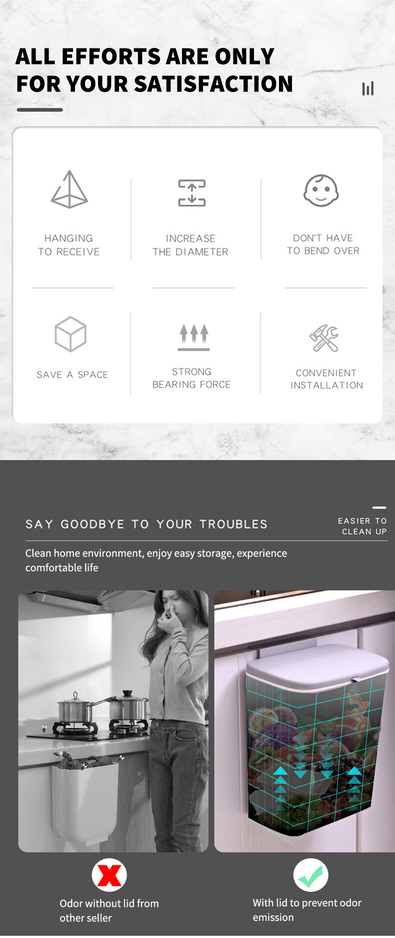 Kitchen Hanging Rubbish Bin Trash Can Recycle Bin Cabinet Slip Cover Dustbin
