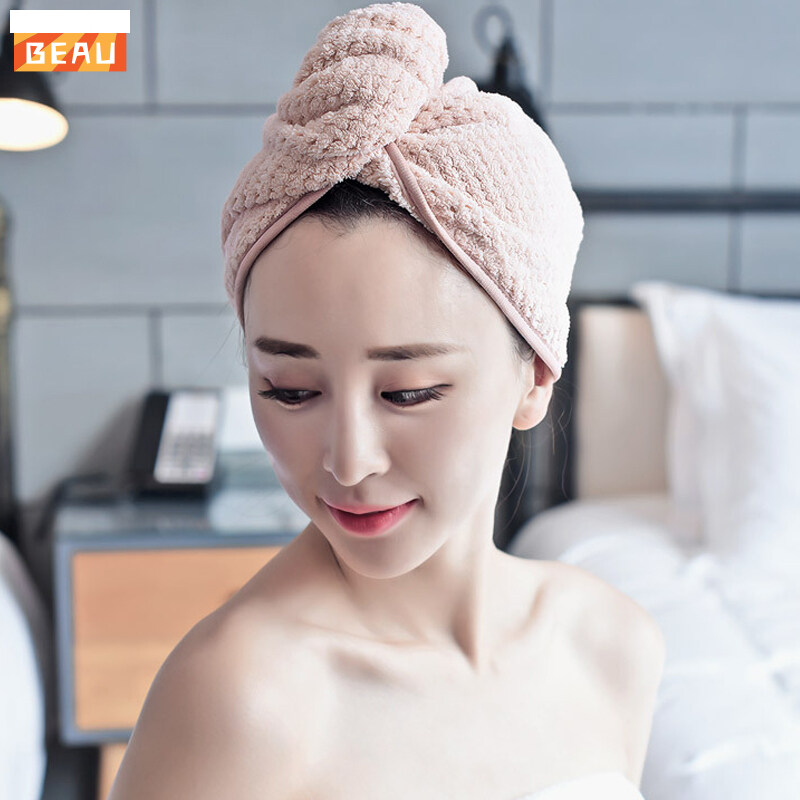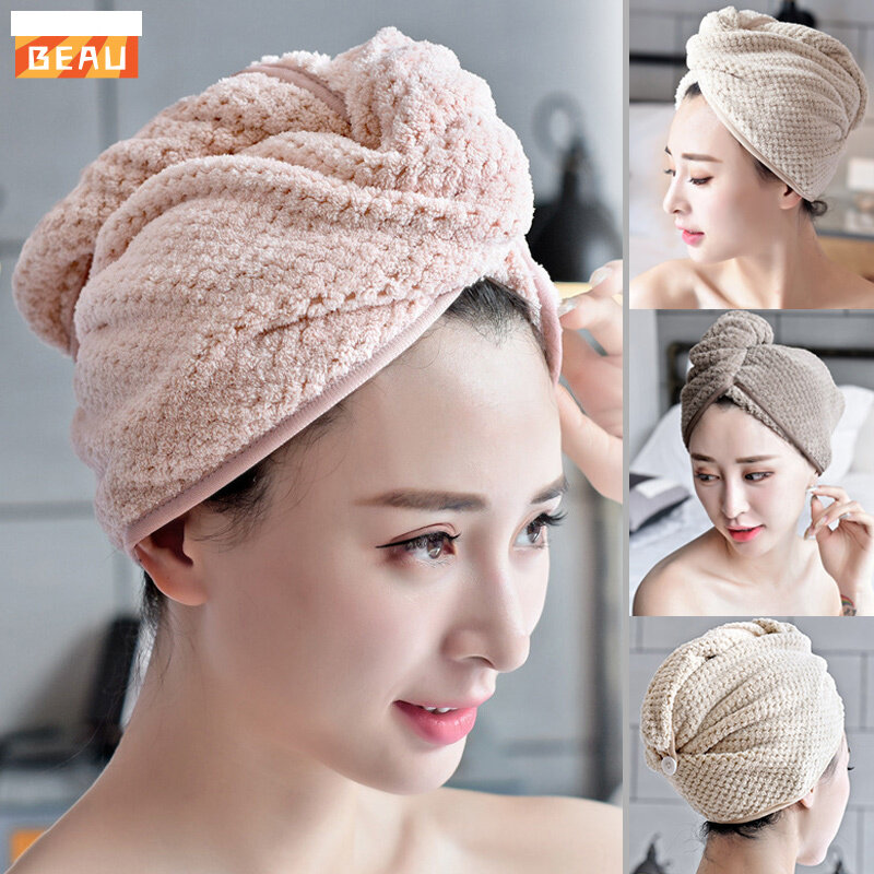 BEAU# Micro Fiber Hair Towel Hair Drying Towels Quick Dry Hat Cap Twist Head Towel with Button