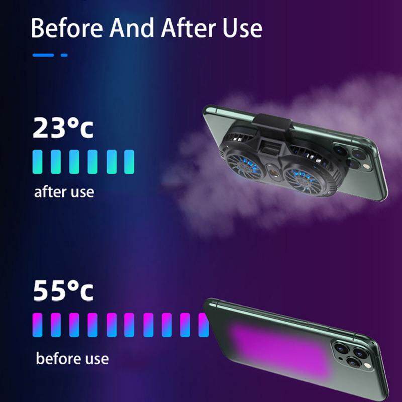 Uonevic 2021 Mobile Phone Cooler Semiconductor Radiator Cooling Fan Mute Stretchable Game Pad Holder Bracket Double Fan For Smartphone X2