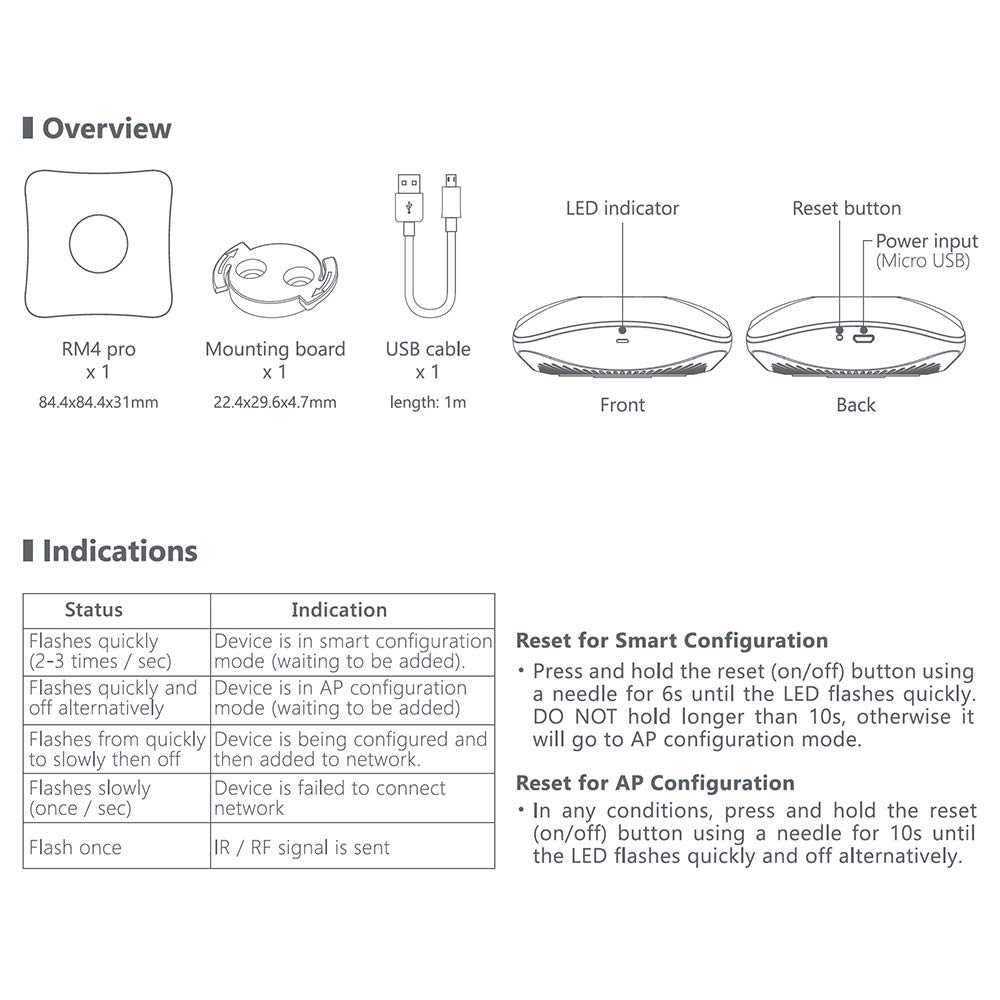 Smaller but smarter: create the timer and scene as you need. Large IR (38kHz) database: cover 99% IR remote function, update automatically on the cloud. RF (315kHz and 433kHz) Support also.