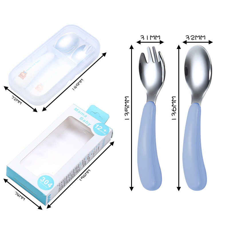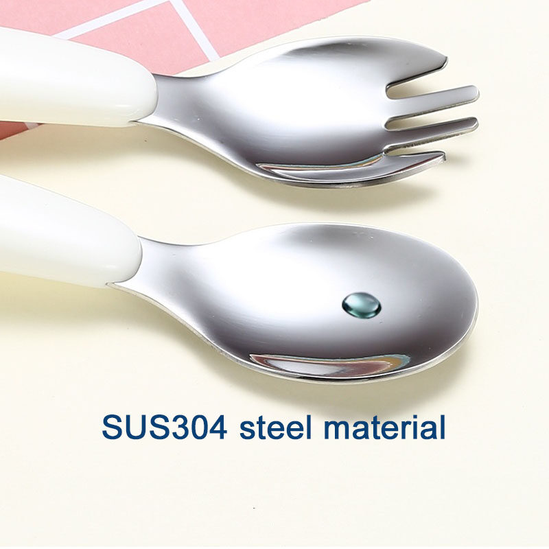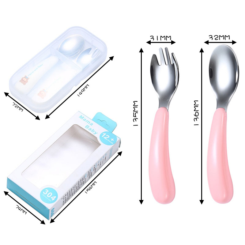 Mododo 2pcs/Set Spoon Forks Portable Children 1Box Kids Cutlery 304 Stainless Steel Tableware Baby Feeding Utensils Cartoon Pattern