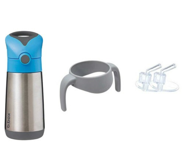 Clean modern design and big kid aesthetic. Available in six fab b.box colours. Kids love our easy drinking silicone straw top. Parents love no leaks in the bag (when the lid is closed). Replacement straw packs available, sold separately. When using to keep liquids warm - for best performance fill the stainless steel base with hot water for a few minutes to warm it before pouring water out - and filling with warm liquids.