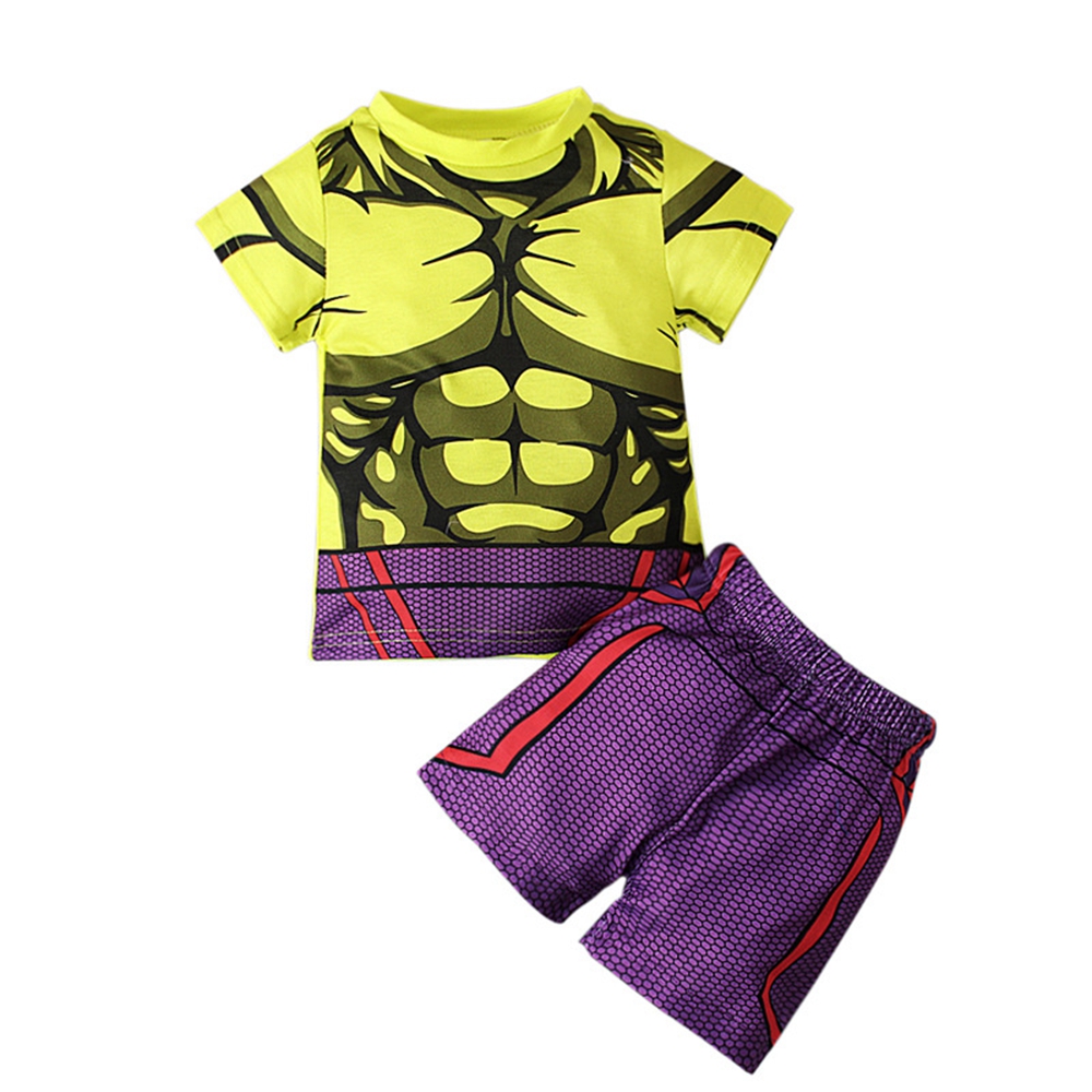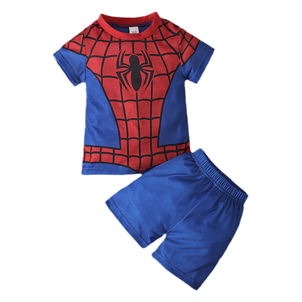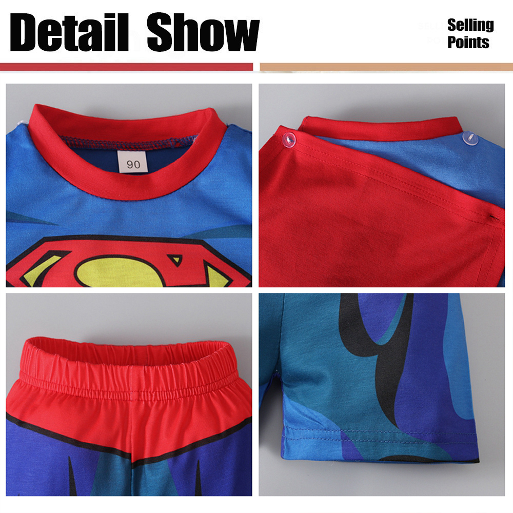 Summer Kids Boys Clothing Set Superhero Supermans Spiderman Ironman Bat-man Holk Captain America Print T-shirts + Short Pants Children Clothes Suits Sleepwear For Boy High Quality Age 1-8 Years