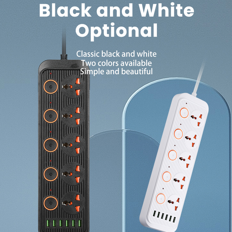 (Gift)JFKDX A06 UK Plug 3000W Power Strip 3 Universal Outlet+6 USB Extension Socket 3.1A Separate Switch Wall Mounted For Home Office With 2 Meter Power Socket