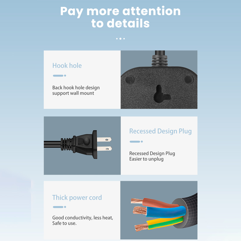 • Combining multi sockets plug & USB outlet together, compact size & tidy, charging up to devices simultaneously, such as cellphone, tablet, laptop, lamp, etc. It's suitable for Bedroom, Dining Room or office using