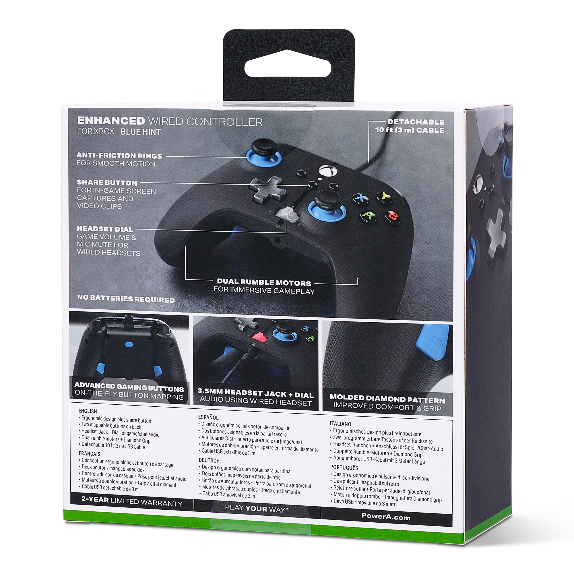 PowerA Enhanced Wired Controller for Xbox Series X|S, Xbox One, Windows 10/11 - Blue Hint (Officially Licensed)