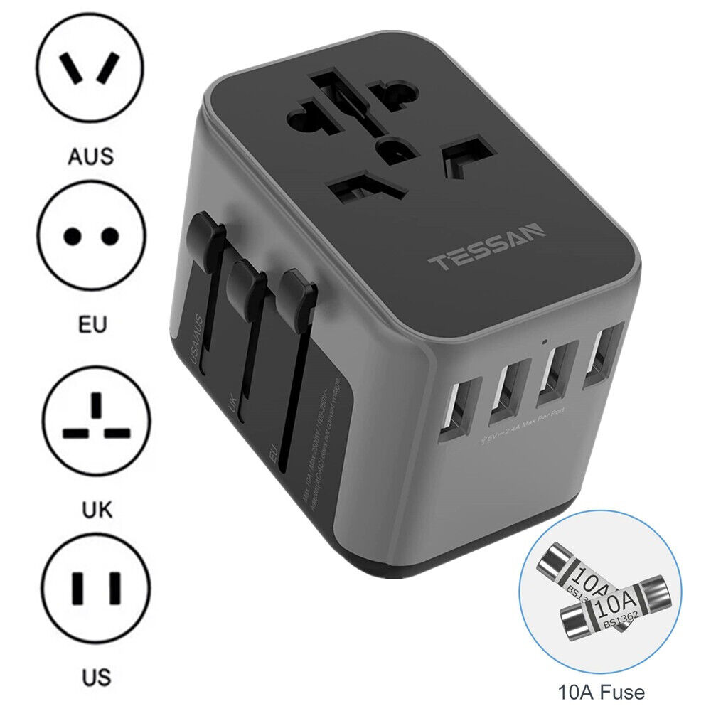• Please Note: TESSAN Power adapter converts the power plug only, does not convert voltage; Some country like China, Philippines is 220V, your devices need to support dual voltage ( 100V to 250V)
