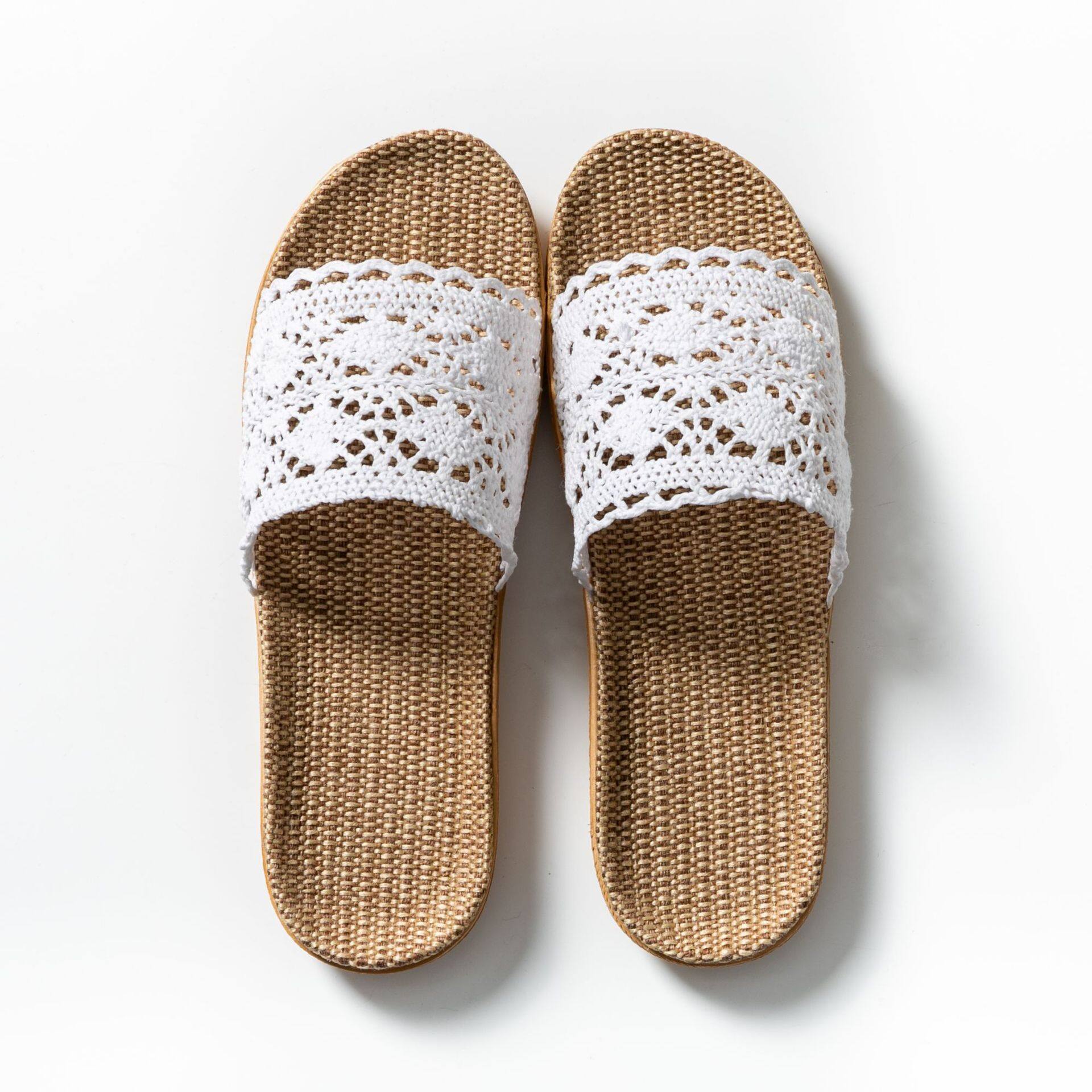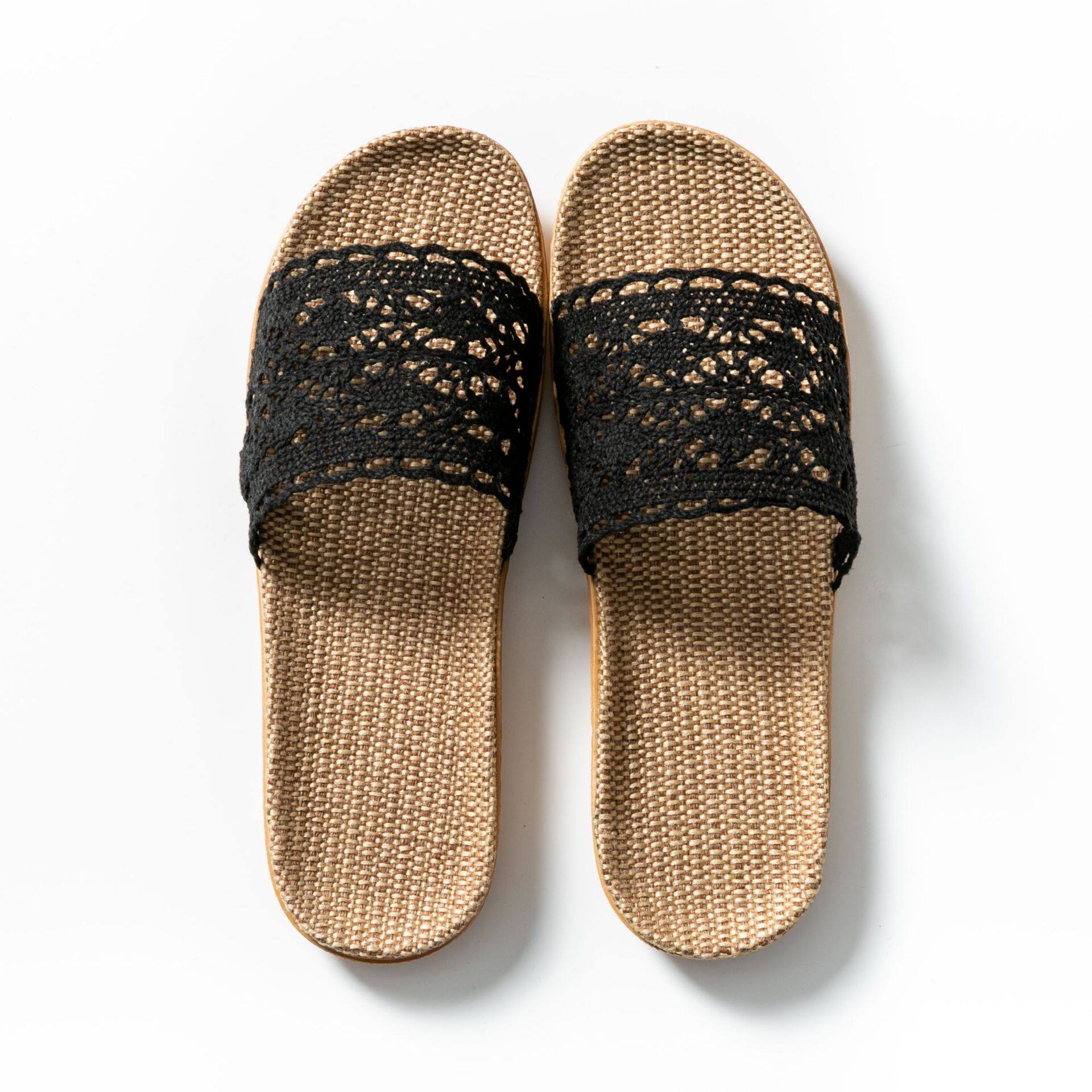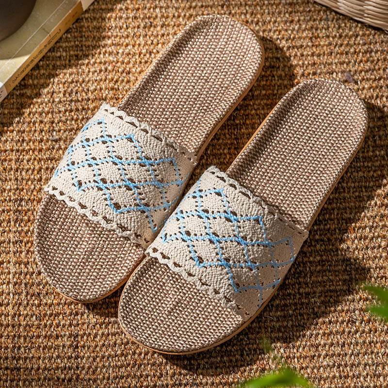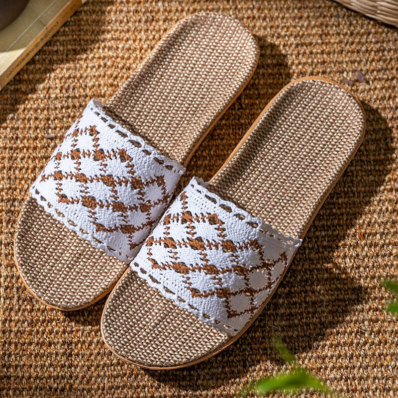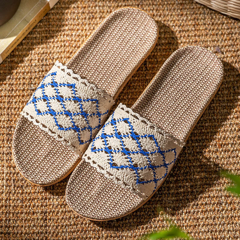 Summer Lace Ladies Sandals and Slippers Home Indoor Non-slip Floor Home Linen Slippers Female Home Use All Seasons Comfortable and Breathable Home Slippers