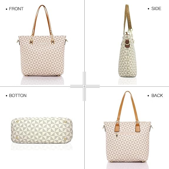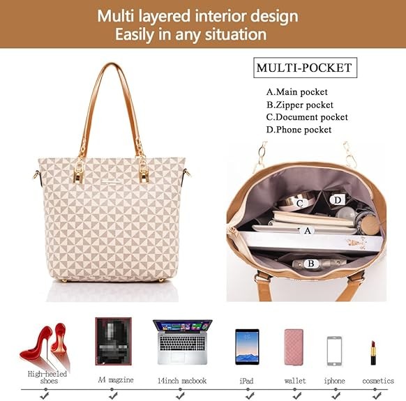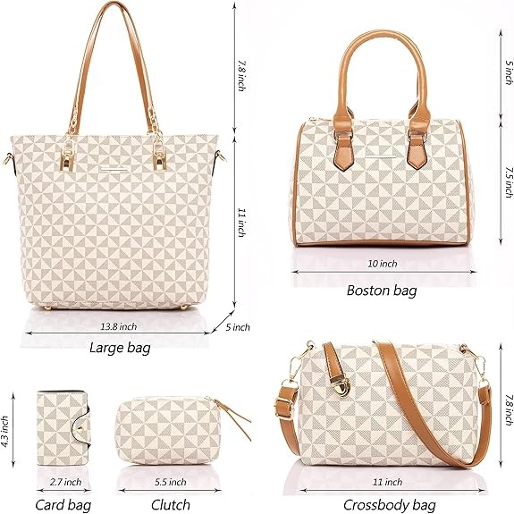 The 2E-Youth 5-piece women's wallet and handbag set is a designer handbag! The beige wallet design embodies simple fashion. The multi-layered interior allows for easy use in any situation. The durable large handbag can accommodate a 14-inch laptop or tablet, A4 documents or books, and your favorite high heels. The shoulder bag can hold a coin purse, long wallet, sunglasses, an umbrella, makeup, and more. The 2E-Youth clutch can hold your keys, lipstick, and other small items.