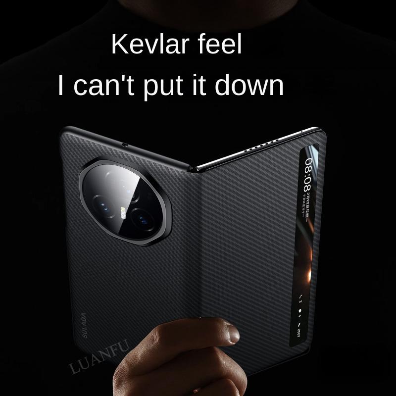 Case for Honor Magic V3 Kevlar 600D Textured Intelligent Window Folding Screen Protective Cover Wireless Charge Intelligent Sleep Anti-drop Shockproof Protective Case
