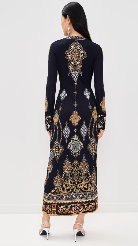 Long V Neck Twist Front Jersey Dress