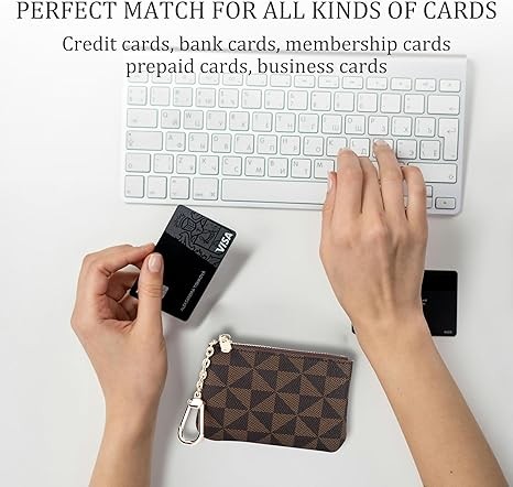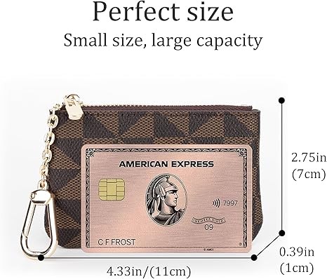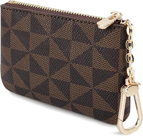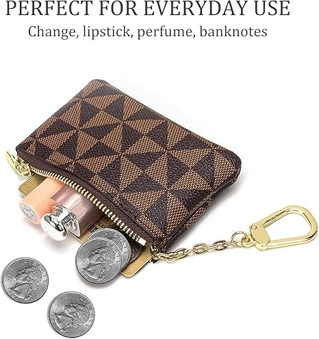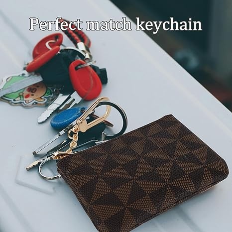 Veki Coin Purse Mini Wallet Wallet with Keychain Ring Zipper Men's Women's Fashion Bag Keychain Pendant Leather Classic Clutch, Brown, 1